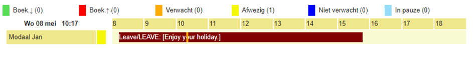 · Verwacht: de werknemer wordt op basis van zijn geplande dagrooster verwacht maar is (nog) niet aanwezig.