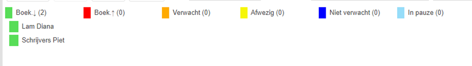 · Kleuren van de verschillende statussen : de verschillende statussen hebben een default kleur. Deze kan naar eigen keuze worden aangepast.
