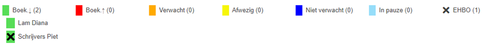 Het cijfer tussen haakjes na de status, geeft aan hoeveel medewerkers deze status hebben.