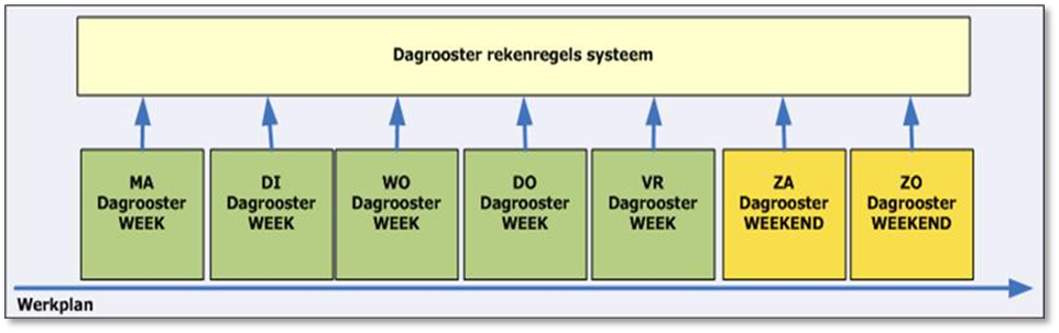 verwacht wordt om te werken. Hiertoe kan men in een dagrooster verschillende