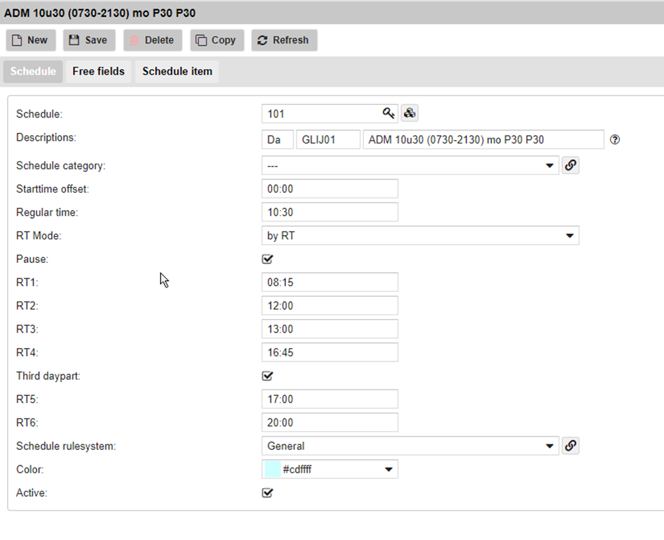 Hoe eventuele registraties en/of ingegeven correcties (afwezigheden, boekingen, enz.) verwerkt worden tot dagresultaten en perioderesultaten wordt bepaald door het rekenregelsysteem waarnaar het dagrooster verwijst. Hier duiden we het rekenregelsysteem aan dat van toepassing is. Indien er geen rekenregelsysteem is gekoppeld, wordt er niets berekend.