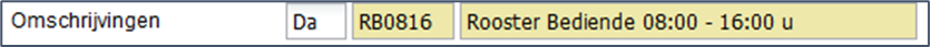Geef een omschrijving aan het dagrooster, vb. "Dagrooster Bedienden". We kunnen hierbij een afkorting van maximum twee tekens ingeven en een afkorting van maximum zes tekens.