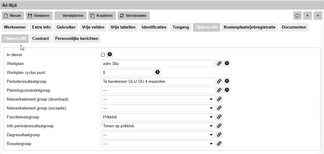 In het werknemersscherm kan je in de tab Tijden/e-HR een werkplan toekennen aan een werknemer