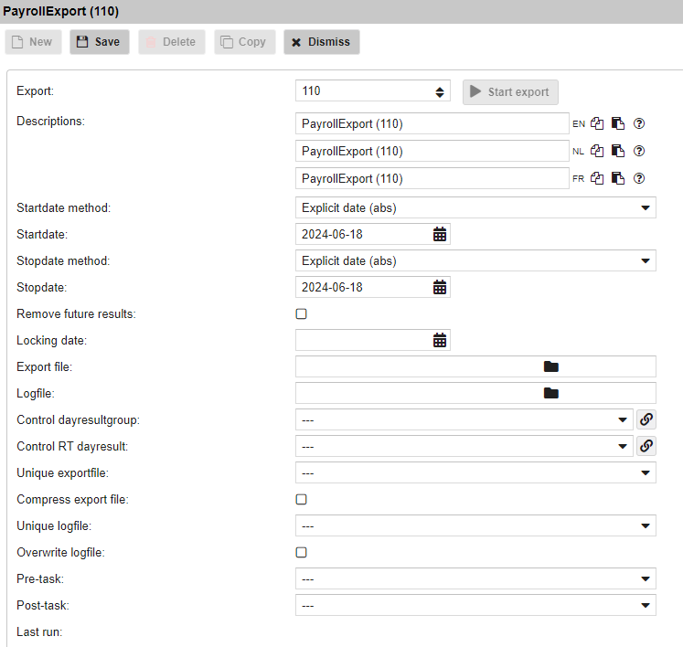 Er staan één of twee exports klaar. Indien je de lonen verwerkt wanneer de maand voorbij is (vb. de 1ste van de volgende maand) dan zal één export voldoen,