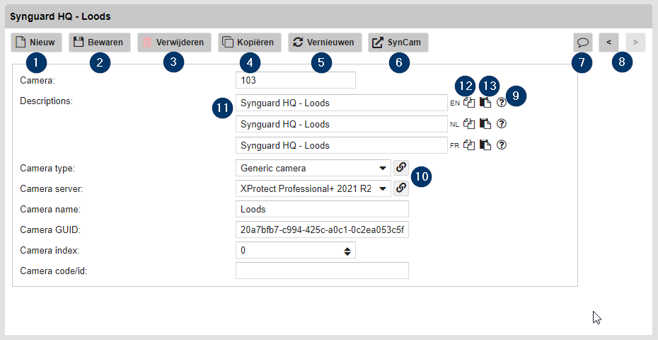 Verschillende talen: Als er gekozen is voor meerdere talen kan de omschrijving van velden in 3 talen worden ingegeven