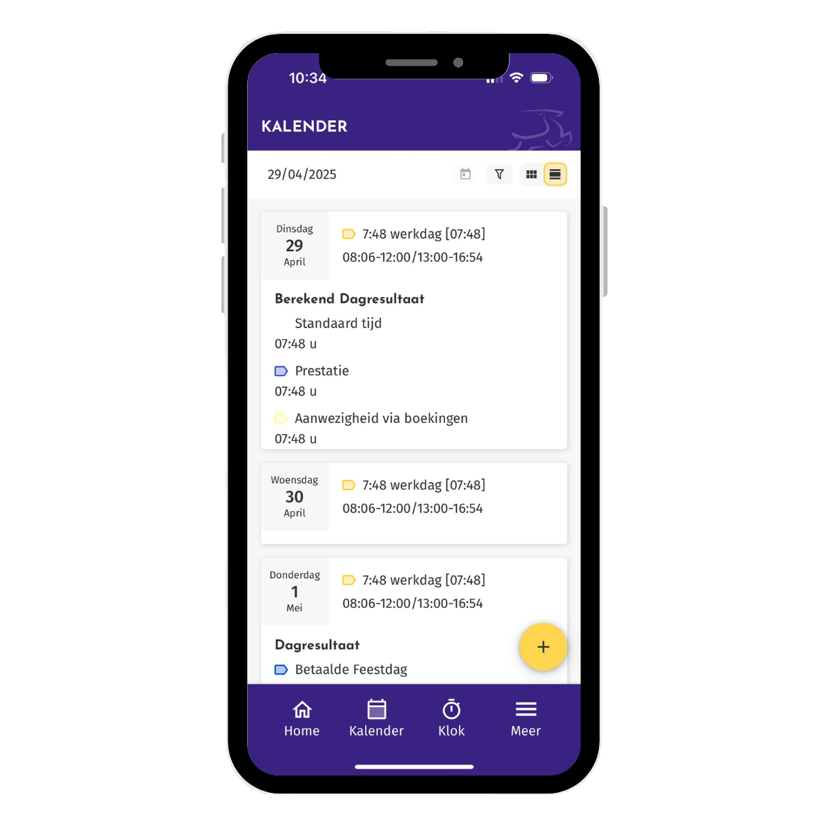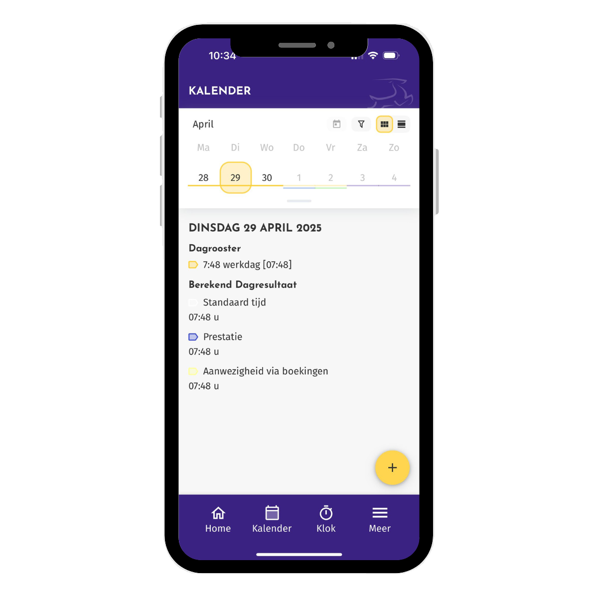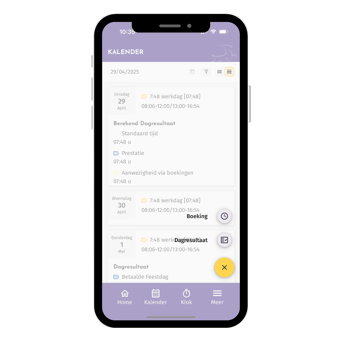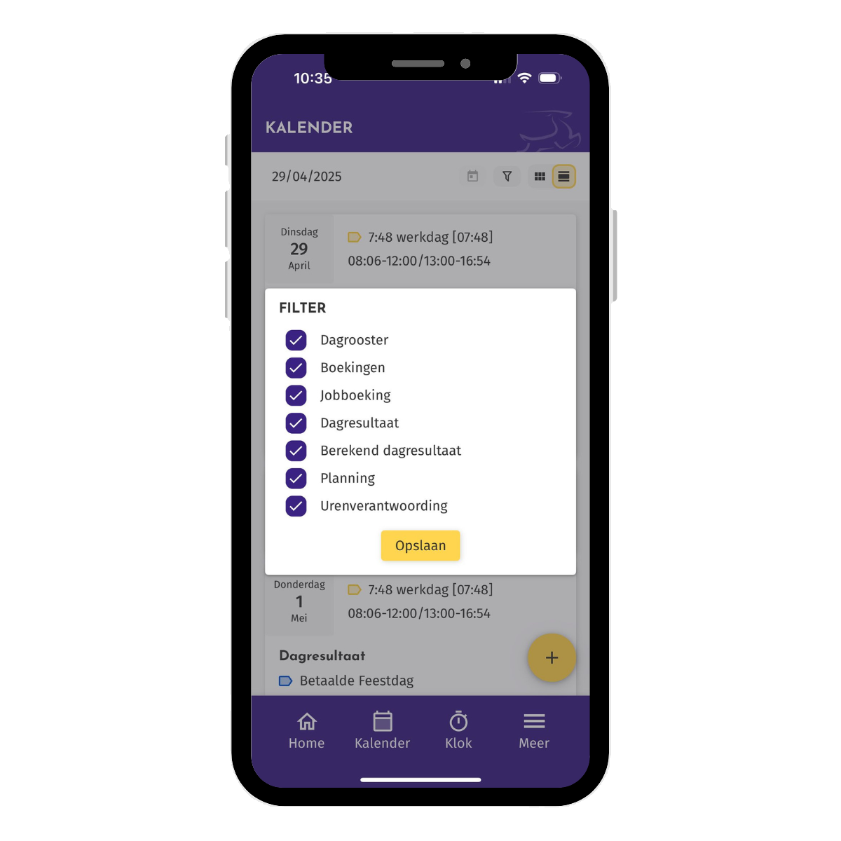Dit is de weergave in de kalender per dag.
