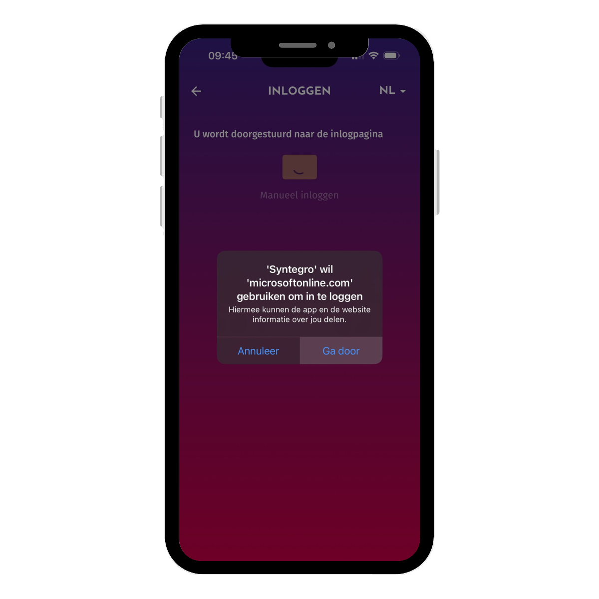 Tik op 'Ga door' om via single sign-on in te loggen.