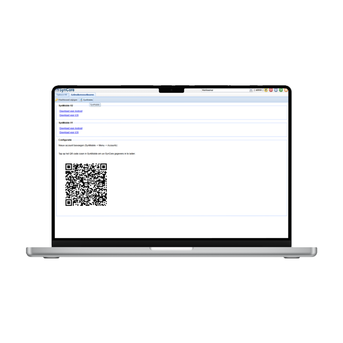 QR-code via de tab gebruiksvoorkeuren SynMobile. (SYN1)