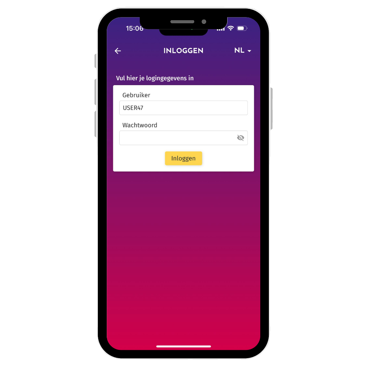Vul hier jouw logingegevens in. Het zijn dezelfde gegevens als je voor onze webapplicatie gebruikt.