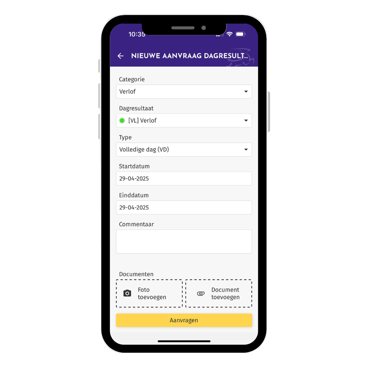 Om de aanvraag in te dienen bij je manager, klik op je 'Aanvragen'.