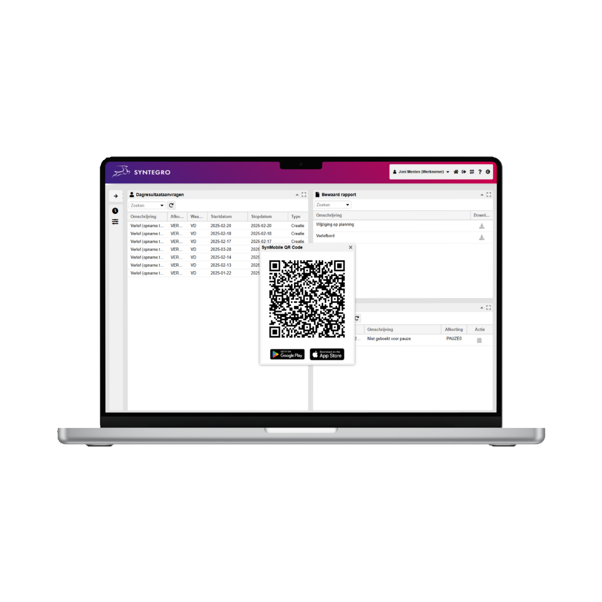 2.1) Tik op 'Inloggen via QR-code' en scan de QR-code rechtsboven in de Syntegro webapp. (SYN2)