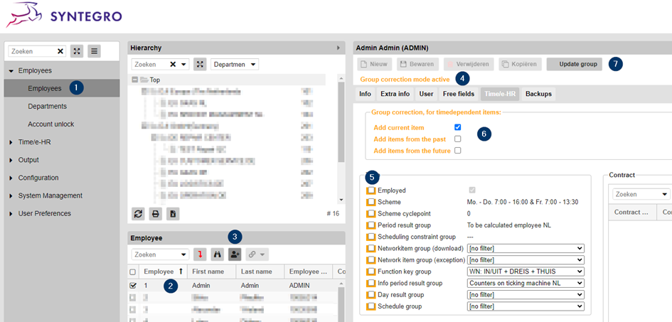 Het kan soms gemakkelijk zijn om voor alle werknemers dezelfde correctie door te voeren met slechts één handeling, namelijk de groepscorrectie. Er kan veel tijd uitgespaard worden door deze te gebruiken, bijvoorbeeld bij het toevoegen van een werkplan dat van toepassing is op een groot deel van het personeelsbestand. In plaats van dit werkplan aan iedereen individueel toe te kennen, wordt dit via de groepscorrectie aan alle geselecteerde werknemers toegekend. Het is belangrijk om ervoor te zorgen dat de gewenste instelling(en) (vb. werkplan) goed staat alvorens de groepscorrectie door te voeren.