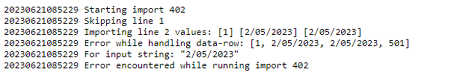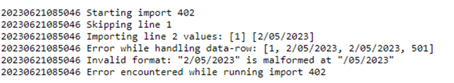 Bij het uitvoeren van een import zal achterliggend ook altijd een ‘log’ bestand aangemaakt worden. De voortgang en eventuele foutmeldingen van de import worden hierin opgenomen.