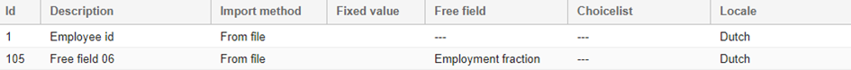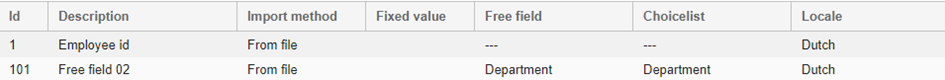 Wanneer men niet op omschrijving importeert, maar rechtstreeks op de ID van de keuzelijst, moet enkel het vrij veld gedefinieerd worden.