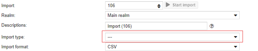 Wanneer een nieuwe import aangemaakt wordt, moet het importtype steeds geselecteerd en bewaard worden vooraleer de rest van de import zichtbaar gemaakt wordt. Op basis van deze keuze zullen de importvelden namelijk onderaan verschijnen.