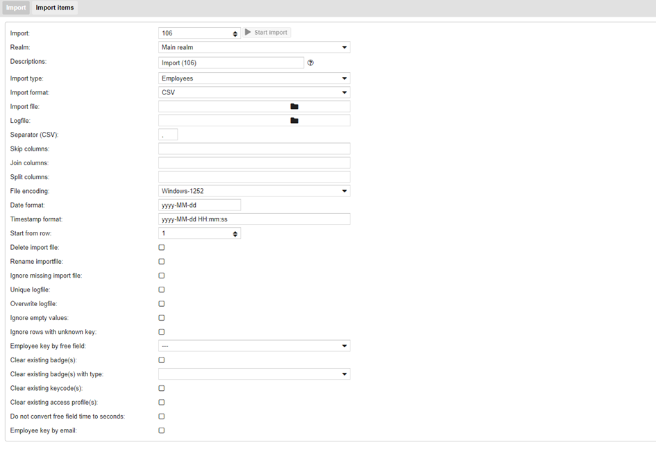 Hier wordt bepaald welke data er geïmporteerd zullen worden: gegevens over werknemers, dagroosters, afdelingen, …