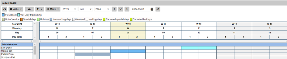 De module “Verlofbord” geeft een overzicht
