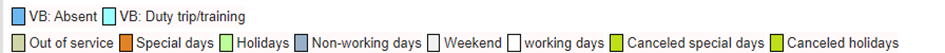 legende duidt aan met welke kleuren niet-werken dagen (bv roostervrij, weekend,